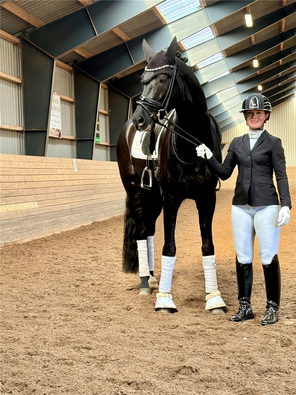 På trods af, at den 5 årige hingst ikke har nogen stævneerfaring fik Maria vist ham flot frem med mange højdepunkter. Hun havde god hjælp af vores dygtige unghesterytter Cecilie Broholm, som med sin fine hjælp sørgede for at alt fungerede bedst muligt.